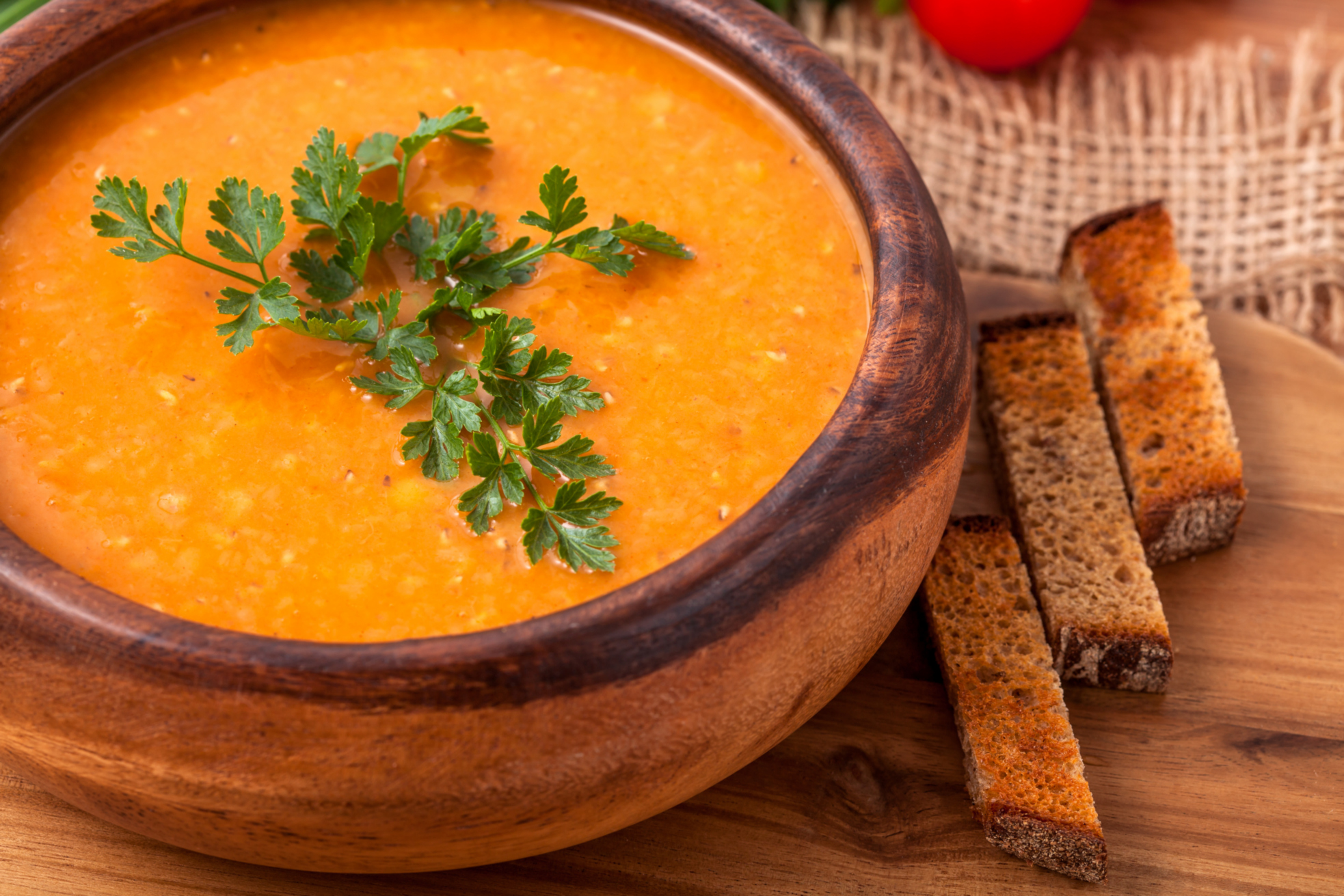 Supă caldă și aromată, pregătită din ingrediente proaspete. Reconfort într-un bol.